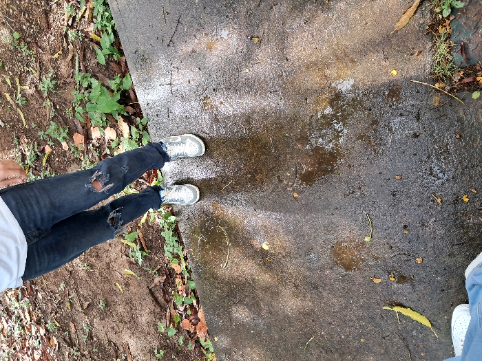 - "The scene depicts an outdoor environment in the city of Las Piedras, Venezuela, focusing on the lower extremities of two individuals standing on a wet, dark grey paved surface" by FM-2tAXJ2, licensed under CC BY 4.0