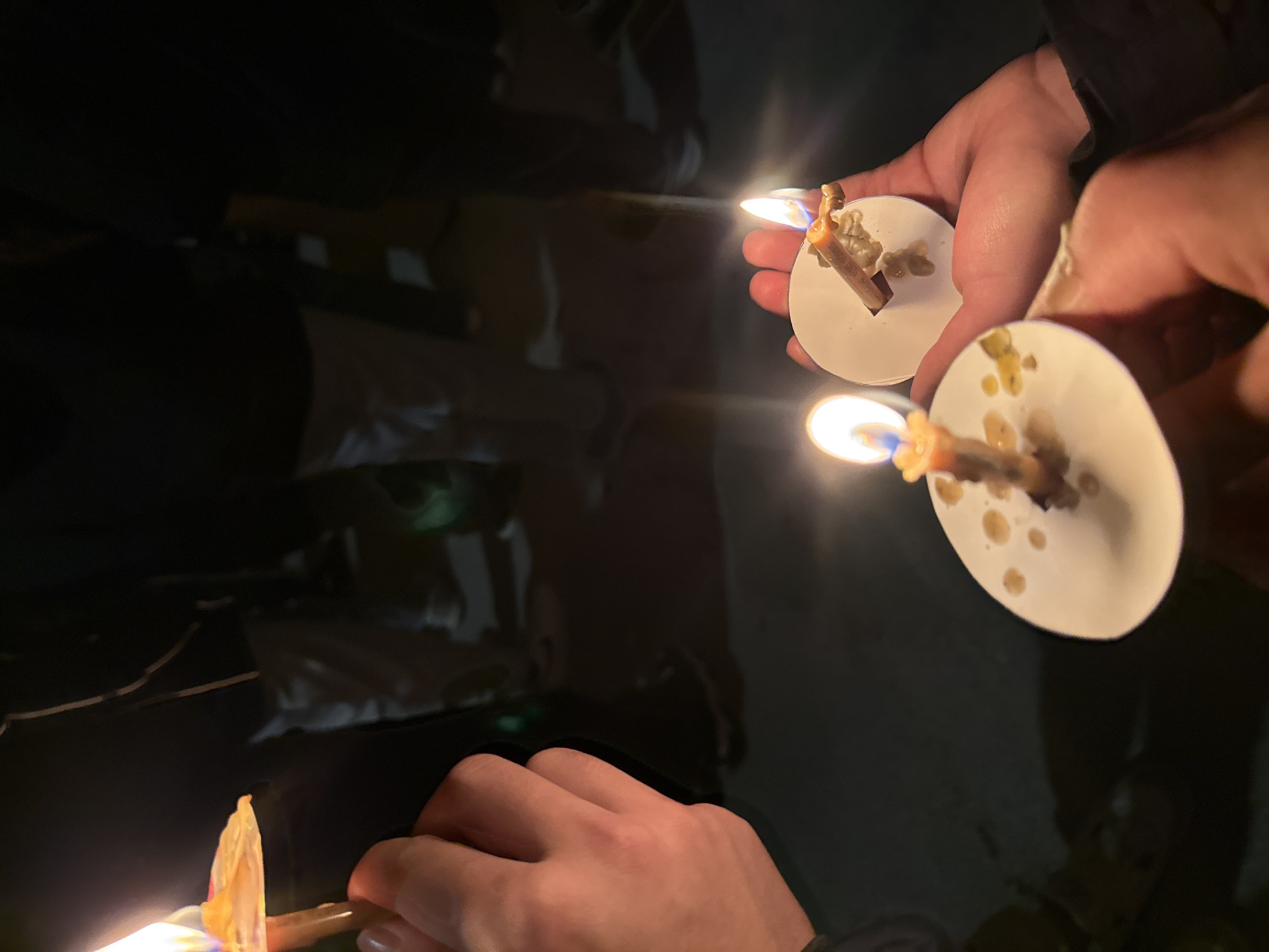 - "three lit candles being held in what appears to be a dark, possibly outdoor, setting" by FM-Foz7E2, licensed under CC BY 4.0