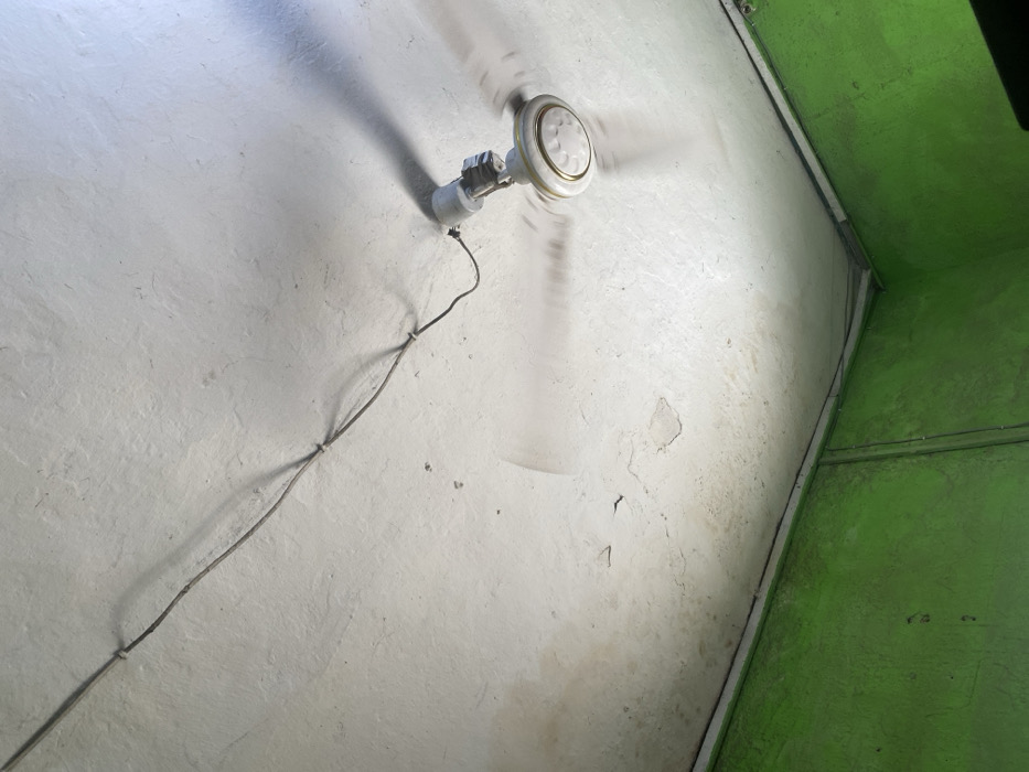 - "Inside a structure in Sabon Gari East, Nigeria, the ceiling is painted an off-white or light grey, exhibiting a textured, uneven surface with visible dirt accumulation, minor cracking, and areas of paint flaking" by FM-KtfGx1, licensed under CC BY 4.0