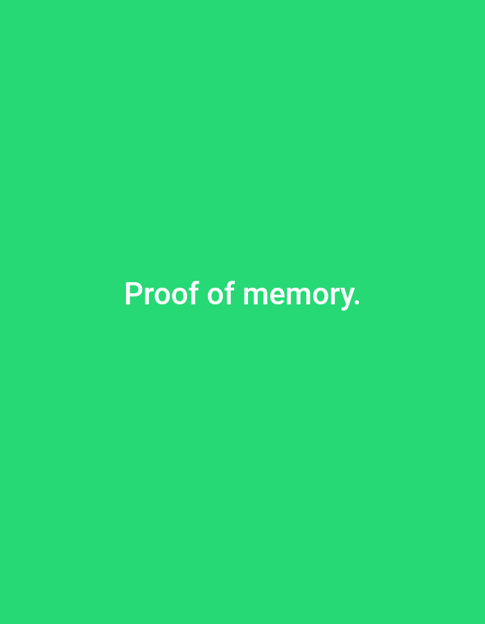 The image is a solid green background with the phrase "Proof of memory