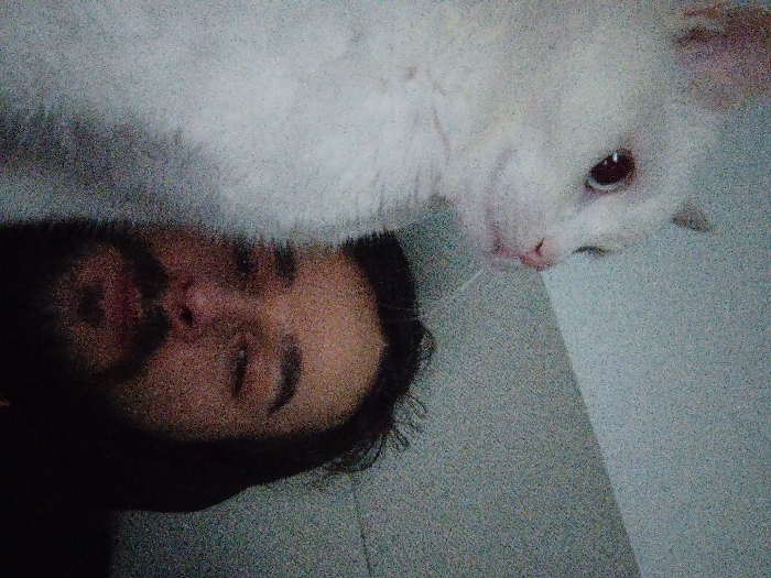 - "A selfie captures a person lying down, with a white cat positioned above their face" by FM-M4lpO2, licensed under CC BY 4.0