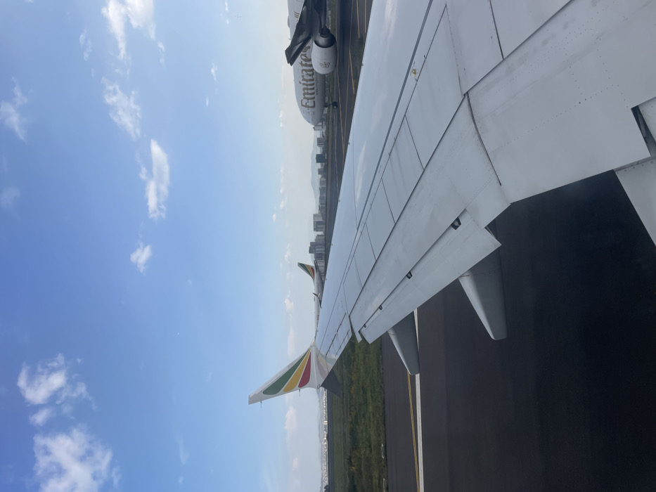 The image depicts an aerial view from the window of an aircraft at Addis Ababa Bole International Airport (HAAB/ADD) in Addis Ababa, Ethiopia
