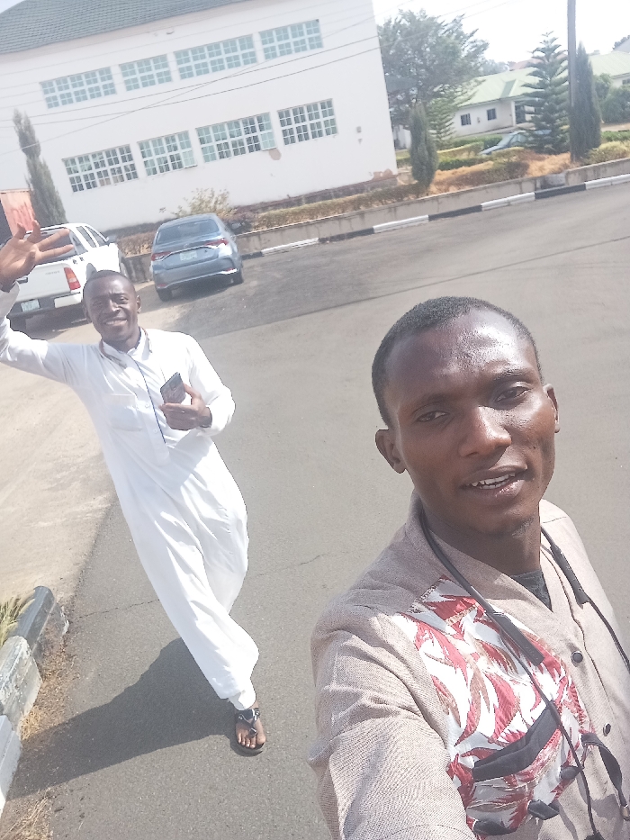 The image displays two adult males on a paved surface in Jos, Nigeria, under clear daylight conditions