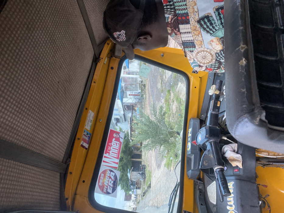 - "The image depicts the interior perspective of a yellow tricycle (keke napep) in Adankolo, Nigeria, looking forward through the windshield" by FM-FxECU2, licensed under CC BY 4.0