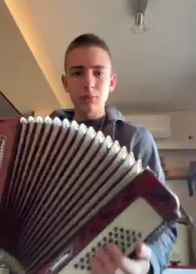 - "A young man is standing indoors, playing an accordion" by FM-OX6RM2, licensed under CC BY 4.0