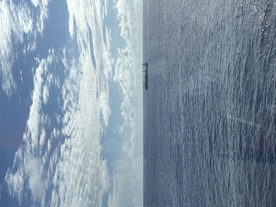 - "The image displays an expansive view of the open ocean and sky, observed through a reflective pane, likely a window, from the city of Long Island, Bahamas" by FM-KIw0r1, licensed under CC BY 4.0