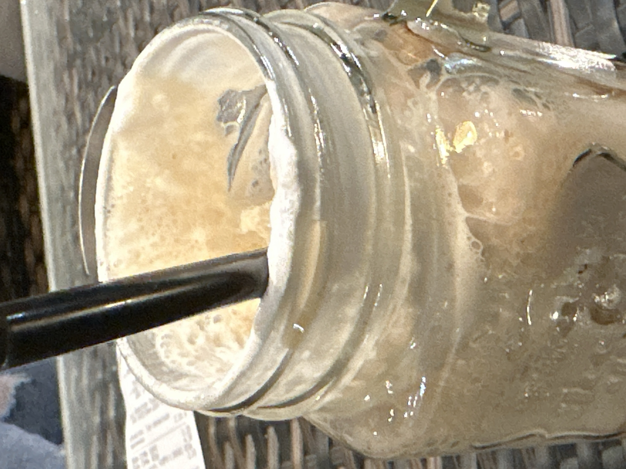 - "The image displays a close-up, slightly elevated view of a light brown, frothy beverage contained within a clear glass mason jar" by FM-CbJ9l1, licensed under CC BY 4.0