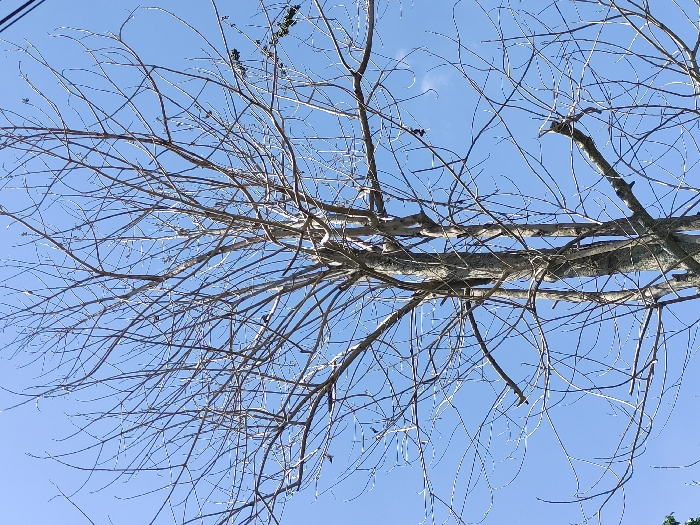 - "The image depicts a leafless deciduous tree with multiple prominent trunks and a dense network of bare, slender branches against a clear, bright blue sky" by FM-sO6Wu2, licensed under CC BY 4.0