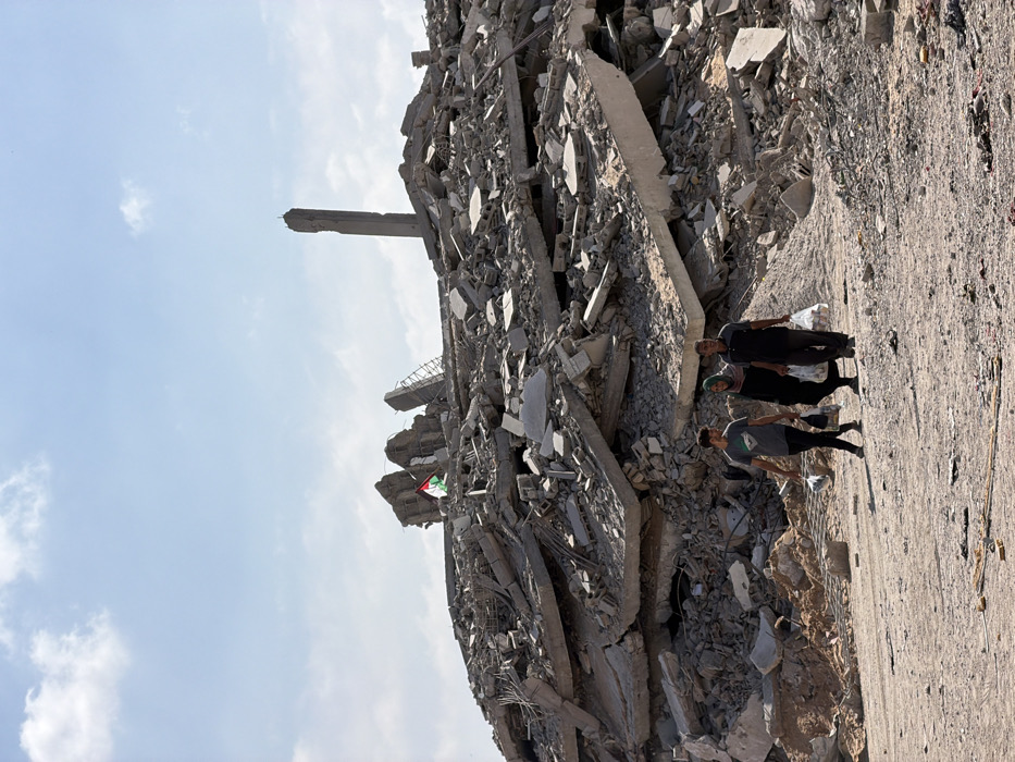 - "The image depicts three individuals walking across a dusty, uneven ground in the city of Gaza, Palestinian Territory, set against a vast backdrop of urban destruction" by FM-PSI0J3, licensed under CC BY 4.0