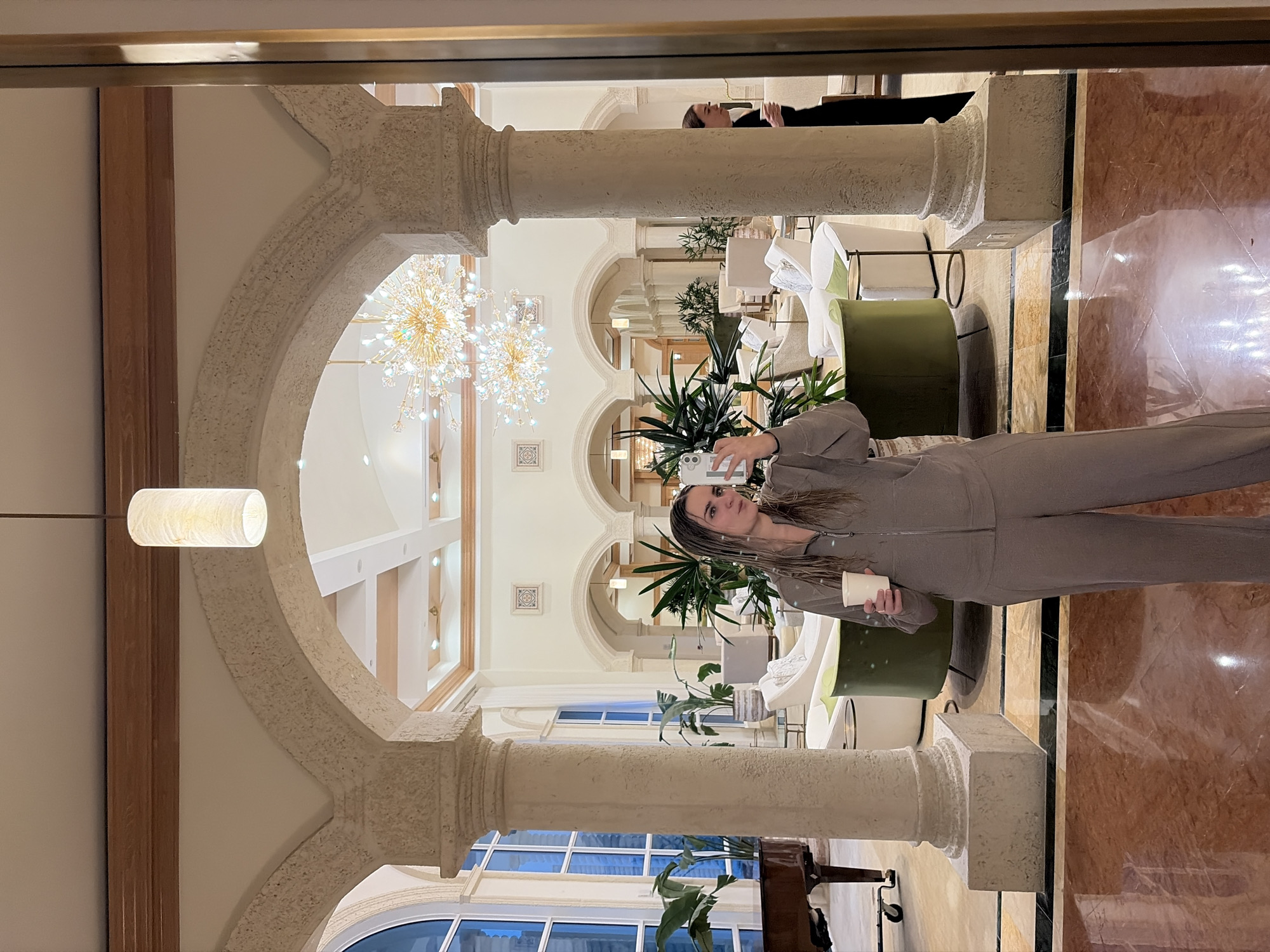 A vertical, eye-level shot shows a person standing inside a luxury hotel, possibly the Ritz-Carlton Key Biscayne, located in the city of Key Biscayne, United States of America