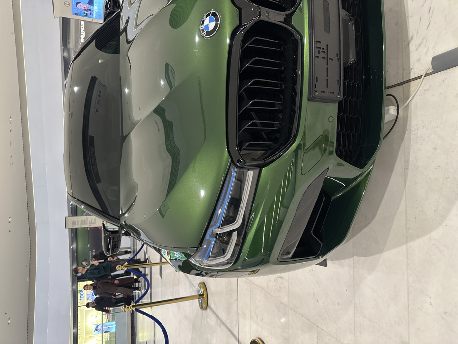 - "This image depicts the front-right quarter of a metallic dark green BMW M series sedan on display within the brightly lit interior of **Samarqand Darvoza Mall in Tashkent, Uzbekistan**" by FM-doFsC2, licensed under CC BY 4.0