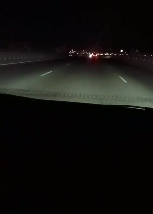 The video is shot from inside a car driving on a highway at night