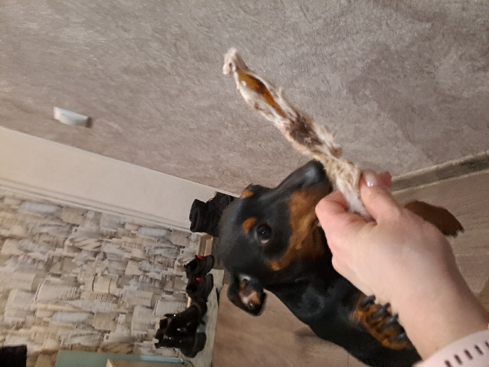 - "This indoor scene, located in the city of Yegoryevsk, Russia, depicts a black and tan dachshund dog engaging with a human hand" by FM-pwVvB3, licensed under CC BY 4.0