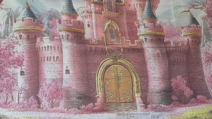 - "The image displays a stylized illustration of a multi-towered pink castle, located in Ostra Mogila, Bulgaria" by FM-8xaNd2, licensed under CC BY 4.0