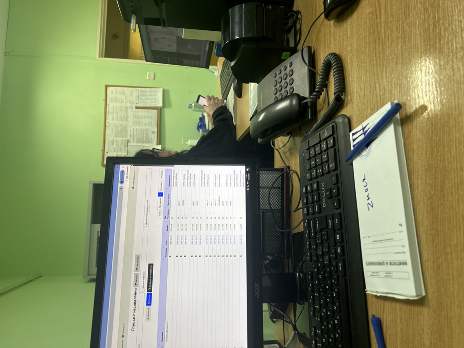 The scene depicts an indoor administrative or clinical office environment, presumed to be within a medical facility in Ruse, Bulgaria