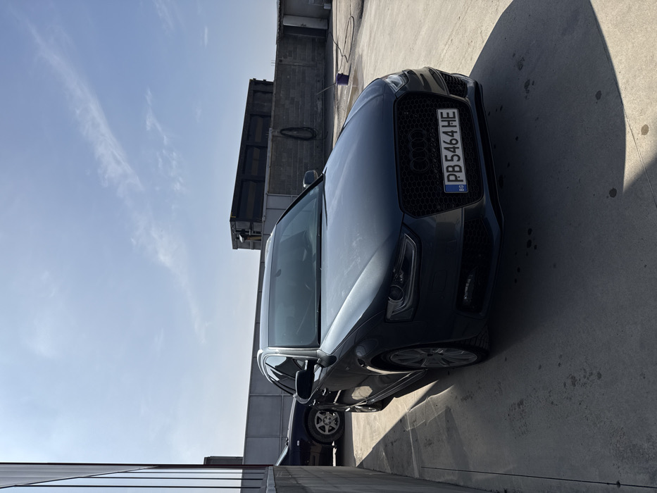 An outdoor scene in Trud, Plovdiv Province, Bulgaria, depicts a dark grey Audi A4 B8 Avant (wagon) parked on a concrete surface