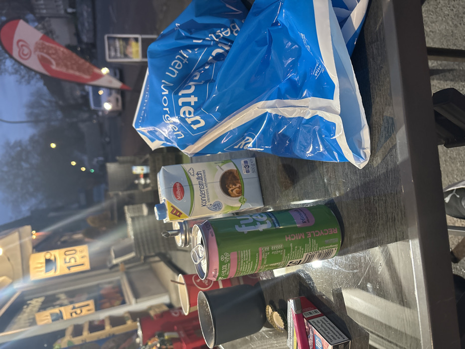 - "The image depicts an outdoor table scene at dusk, likely in Dortmund, Germany, given the German text on products and the provided location context" by FM-ctYCj1, licensed under CC BY 4.0