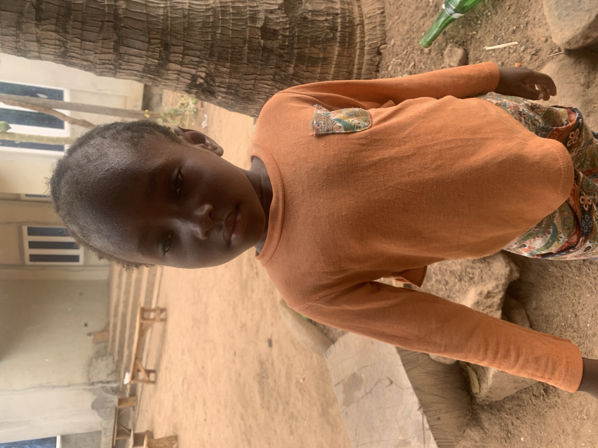 - "An eye-level, medium shot shows a young child in an orange long-sleeved shirt and patterned skirt standing on a dirt surface next to the trunk of a palm tree, likely in an outdoor setting in Akwanga, Nigeria" by FM-5Fy8c2, licensed under CC BY 4.0