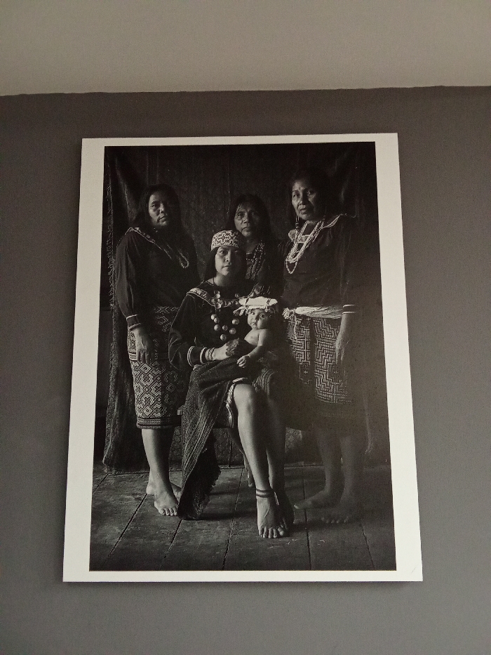 A framed black and white photograph is mounted on a plain gray wall in Providencia, Chile
