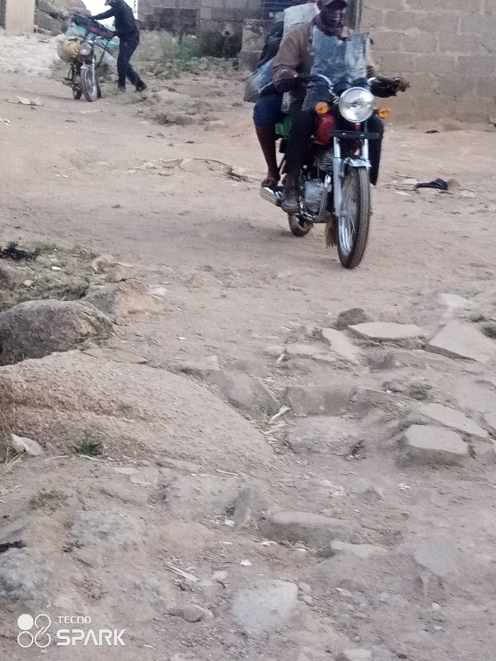 - "An outdoor scene in Jos, Nigeria, depicts two individuals with motorcycles on an unpaved, rocky dirt path" by FM-pVqJy1, licensed under CC BY 4.0