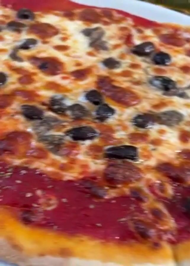 - "A close-up shot showcases a pizza, its surface featuring a vibrant mix of tomato sauce, melted cheese, and scattered black olives" by FM-E1hwL2, licensed under CC BY 4.0