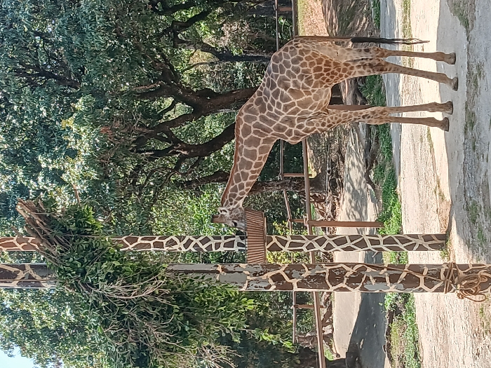 - "The image depicts a single giraffe engaging in feeding activity within an outdoor enclosure" by FM-T60MH3, licensed under CC BY 4.0