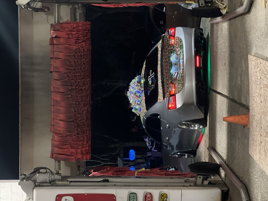 - "A gray car, decorated with a small Christmas tree on the back window and patterned tape outlining the window frames, enters a car wash" by FM-NHy3m1, licensed under CC BY 4.0