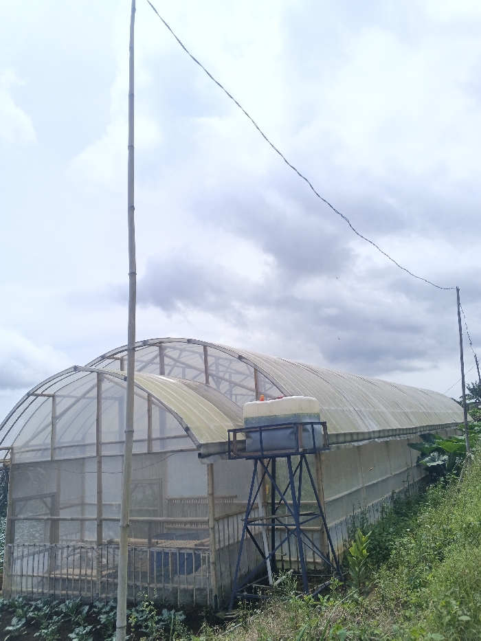 - "An arched, multi-span greenhouse structure occupies the midground, constructed with a visible bamboo framework and covered by translucent, possibly plastic or polycarbonate, sheeting" by FM-u3nIC2, licensed under CC BY 4.0