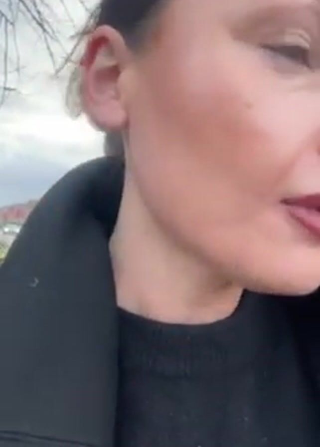 A woman is recording a video while walking outside