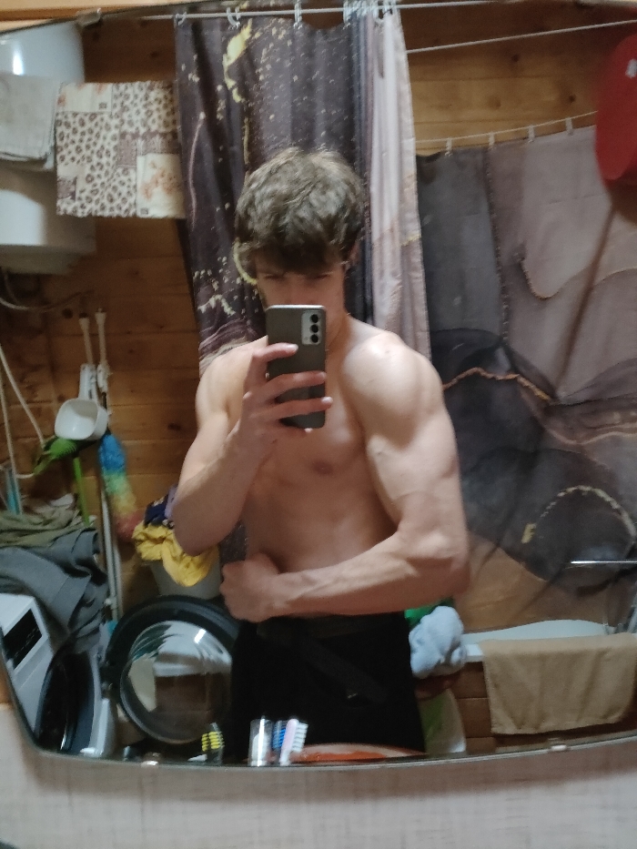 - "A shirtless man with curly brown hair poses in a mirror selfie" by FM-jApwm1, licensed under CC BY 4.0