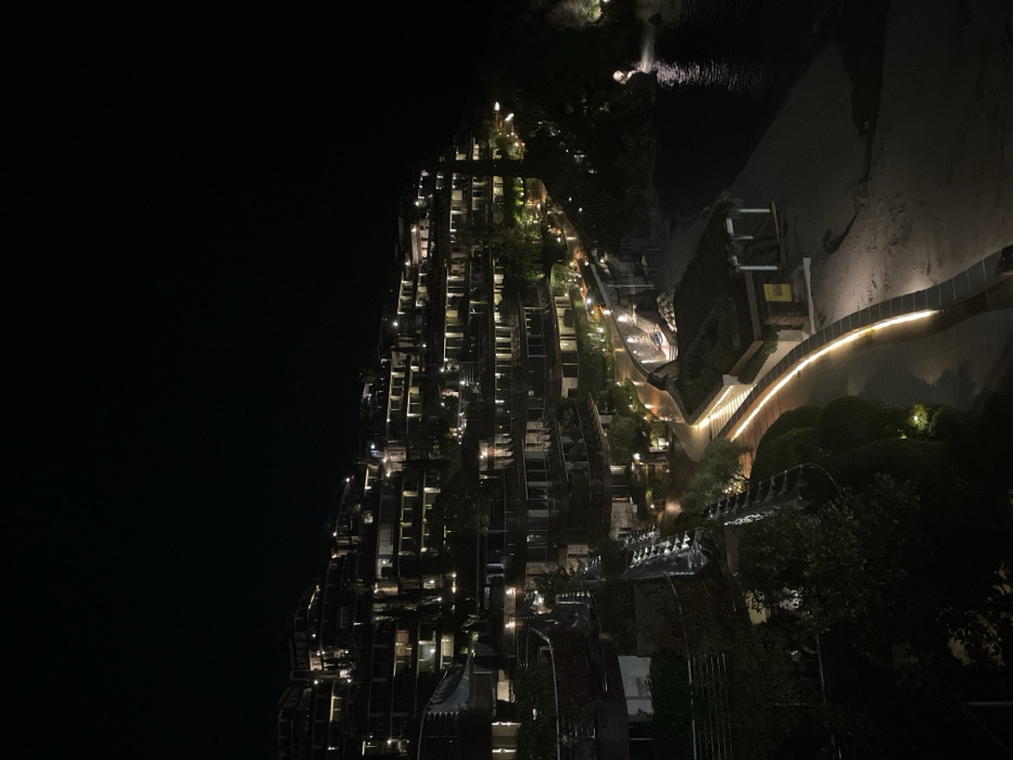 - "At night, an aerial view captures a modern building complex with illuminated balconies, interspersed with greenery" by FM-srcYD2, licensed under CC BY 4.0