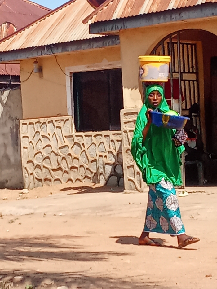 - "An adult female is depicted walking right-to-left across a light brown dirt pathway in Akwanga, Nigeria, under bright sunlight" by FM-0e8Bh2, licensed under CC BY 4.0