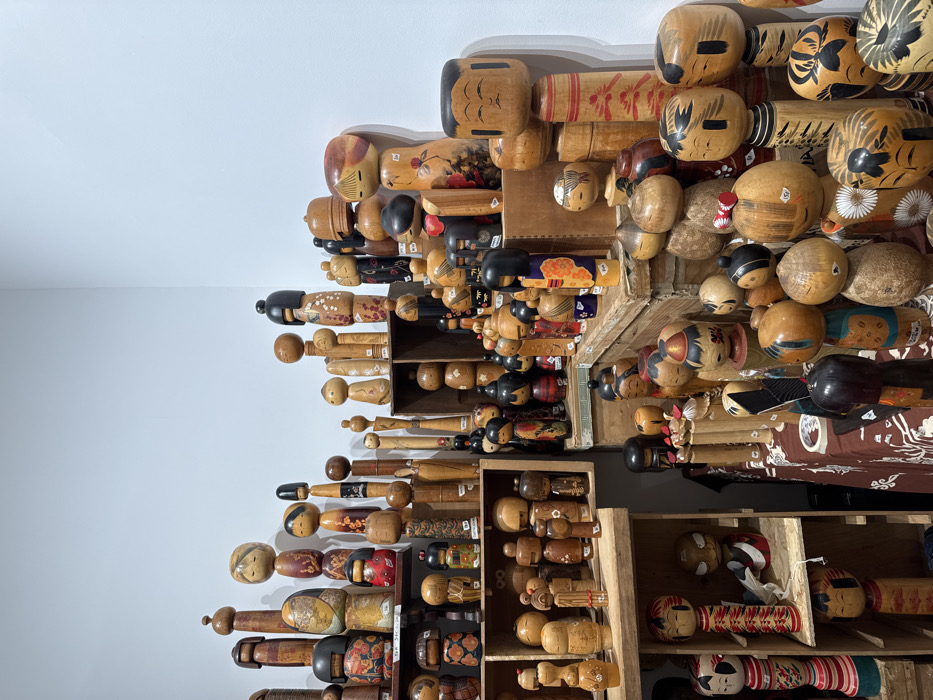 - "The image displays a densely packed indoor scene within a store or market stall in Paris, France, featuring a vast collection of traditional Japanese Kokeshi dolls and stylized wooden figures" by FM-ihFK33, licensed under CC BY 4.0