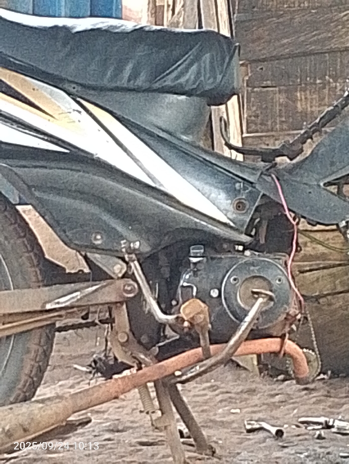 - "This image depicts a partially disassembled black motorcycle in an outdoor setting, identified as the city of Tuaniako, Nigeria" by FM-7YWfh1, licensed under CC BY 4.0