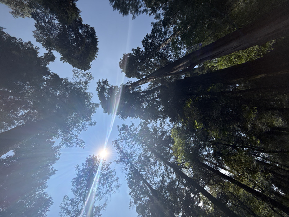 - "A low-angle shot depicts a dense forest canopy against a clear blue sky" by FM-mLRHH2, licensed under CC BY 4.0