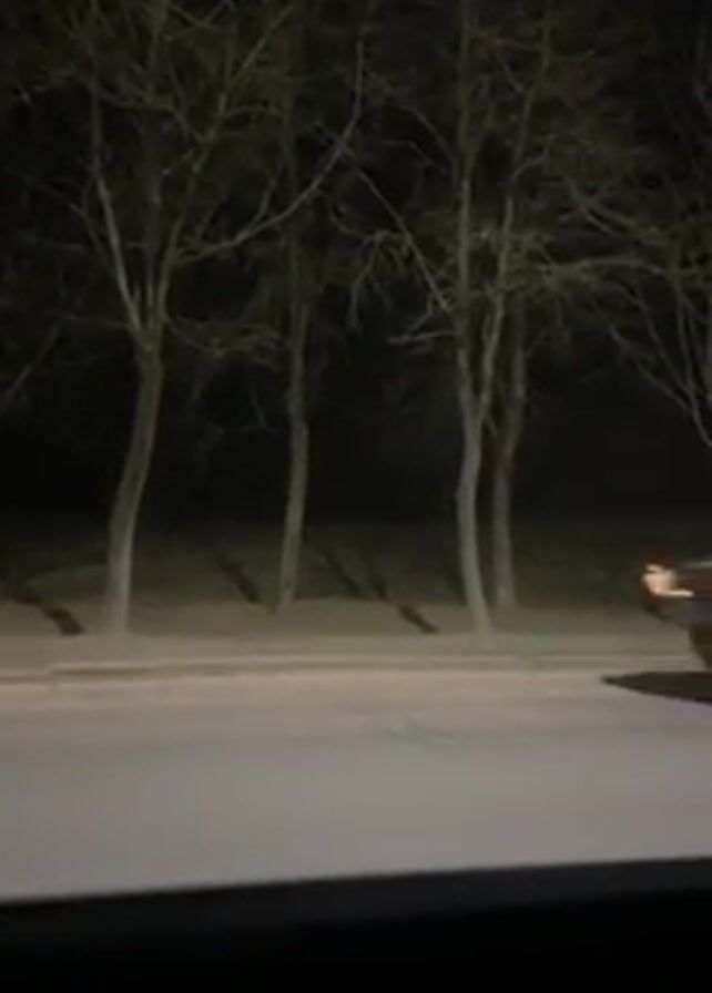 A short video shows the view from inside a vehicle, possibly a car, at night