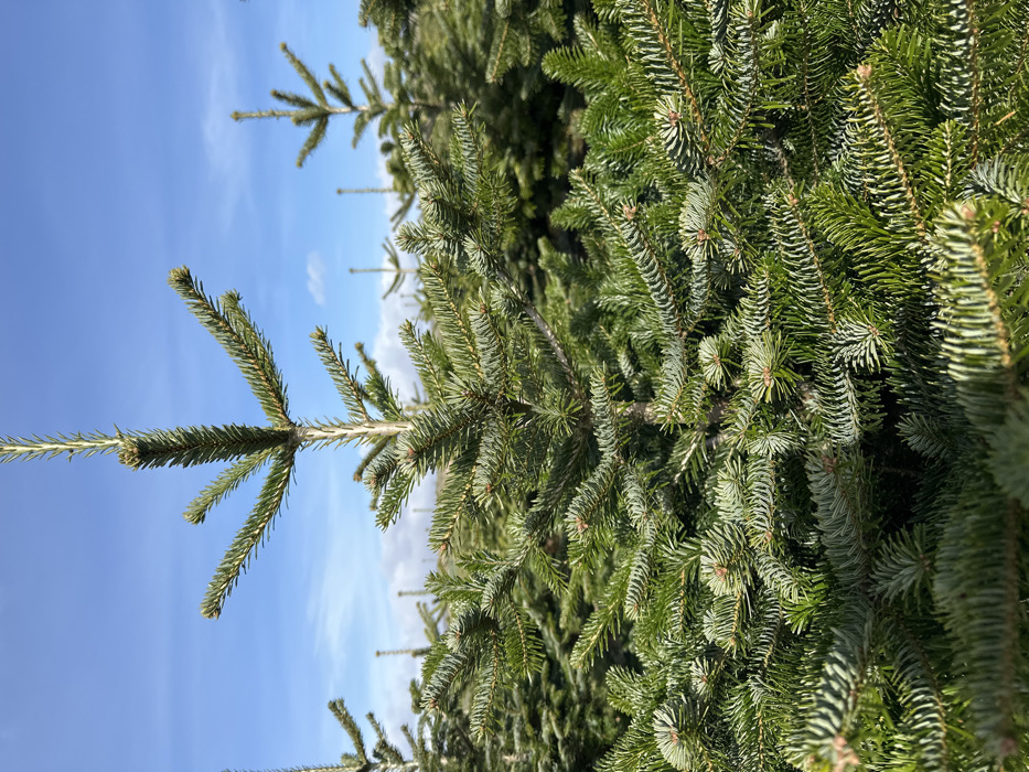 - "The image displays a dense plantation of young evergreen trees, likely firs, under a clear blue sky with scattered wispy white clouds" by FM-f6bQw2, licensed under CC BY 4.0