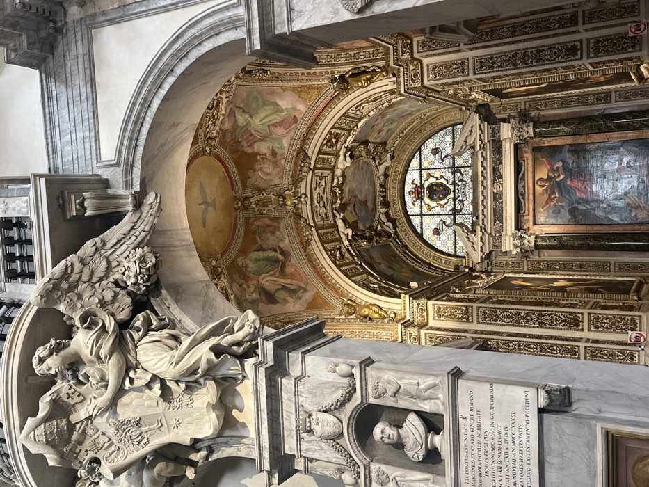 The image depicts an ornate interior within the Santa Maria sopra Minerva basilica in Rome, Italy
