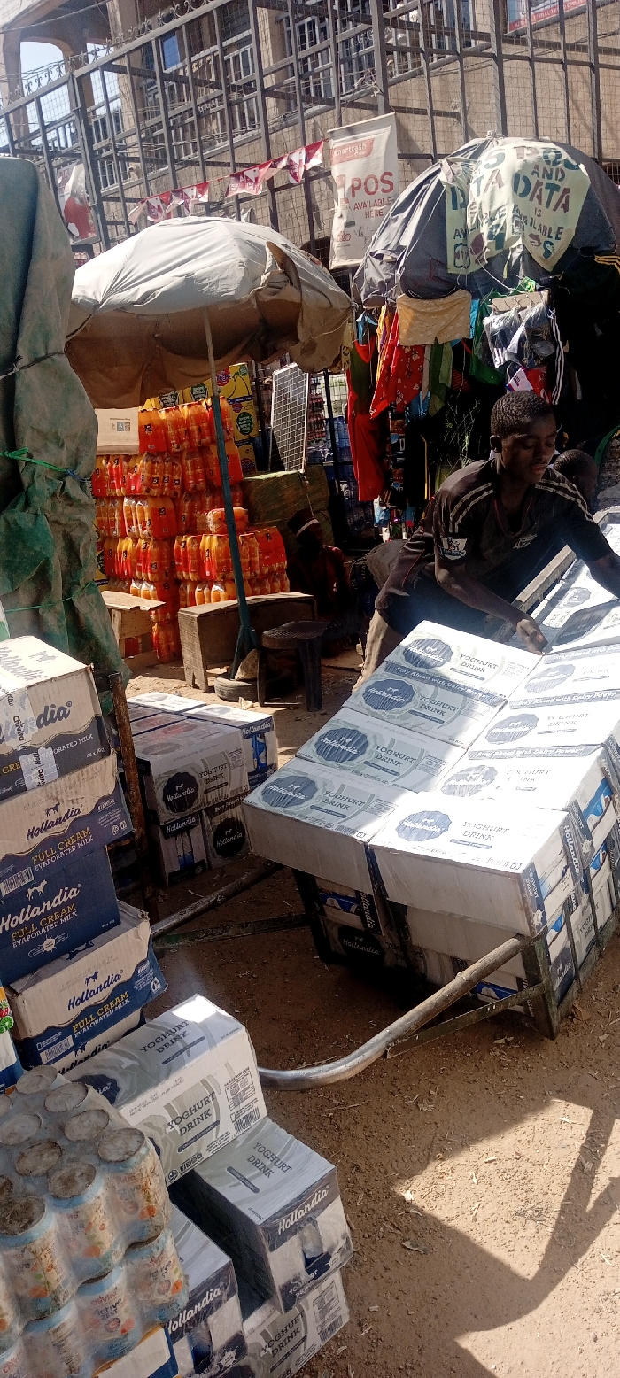 This image captures an outdoor market scene in Fagge A, Nigeria, under bright daylight