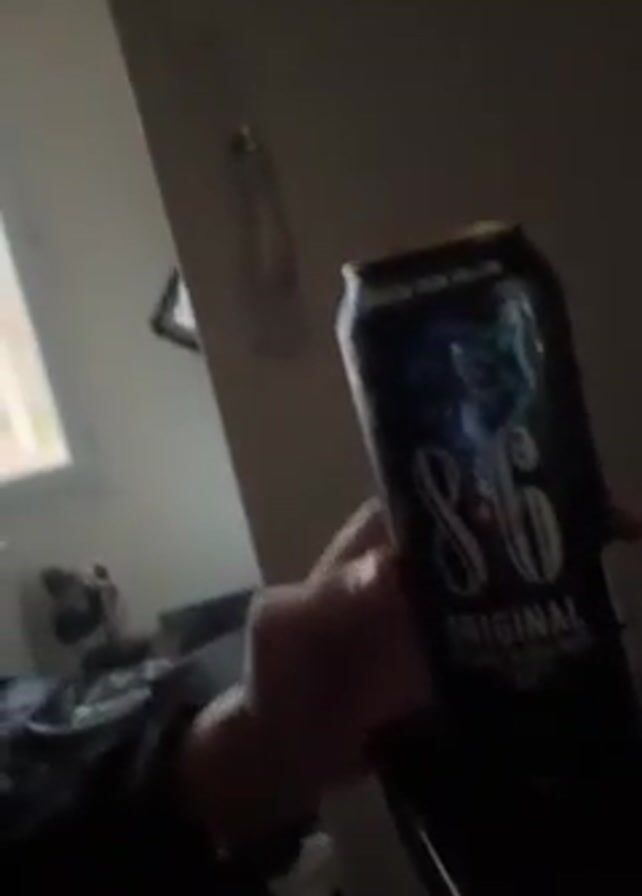 person holding a can of 8
