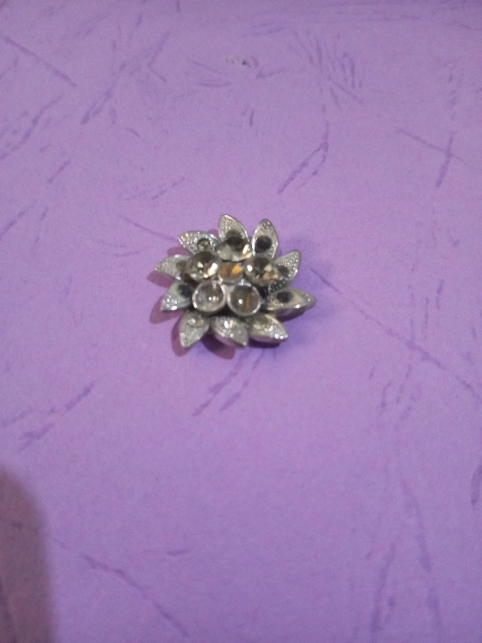 - "A single, silver-toned, flower-shaped decorative item is centrally positioned on a textured purple surface" by FM-VgsoJ2, licensed under CC BY 4.0