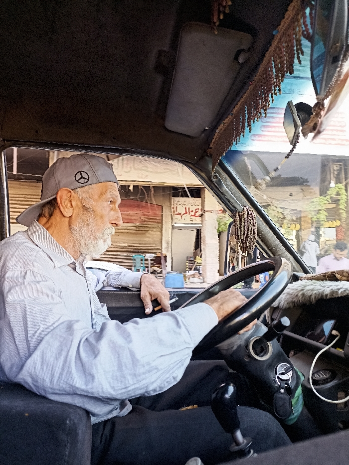- "An elderly man is seated in the driver's seat of a vehicle in Mu'adammiyat ash-Sham, Syria" by FM-gHPc12, licensed under CC BY 4.0
