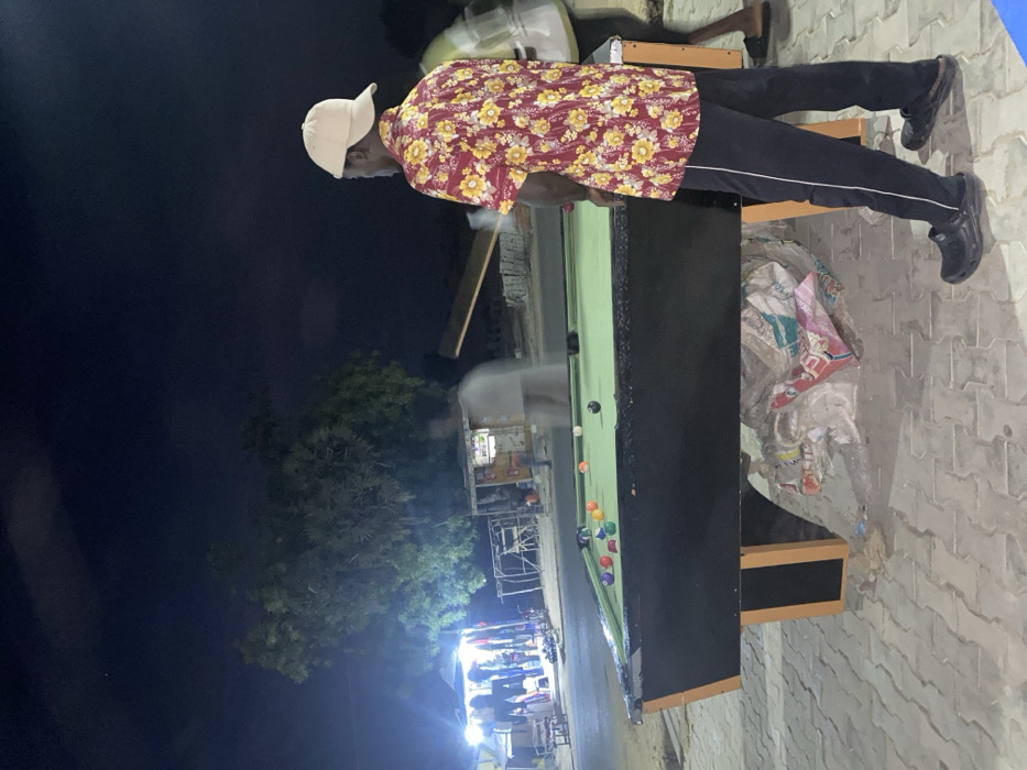 - "A person in a floral shirt and white cap plays pool outdoors at night" by FM-KtfGx1, licensed under CC BY 4.0