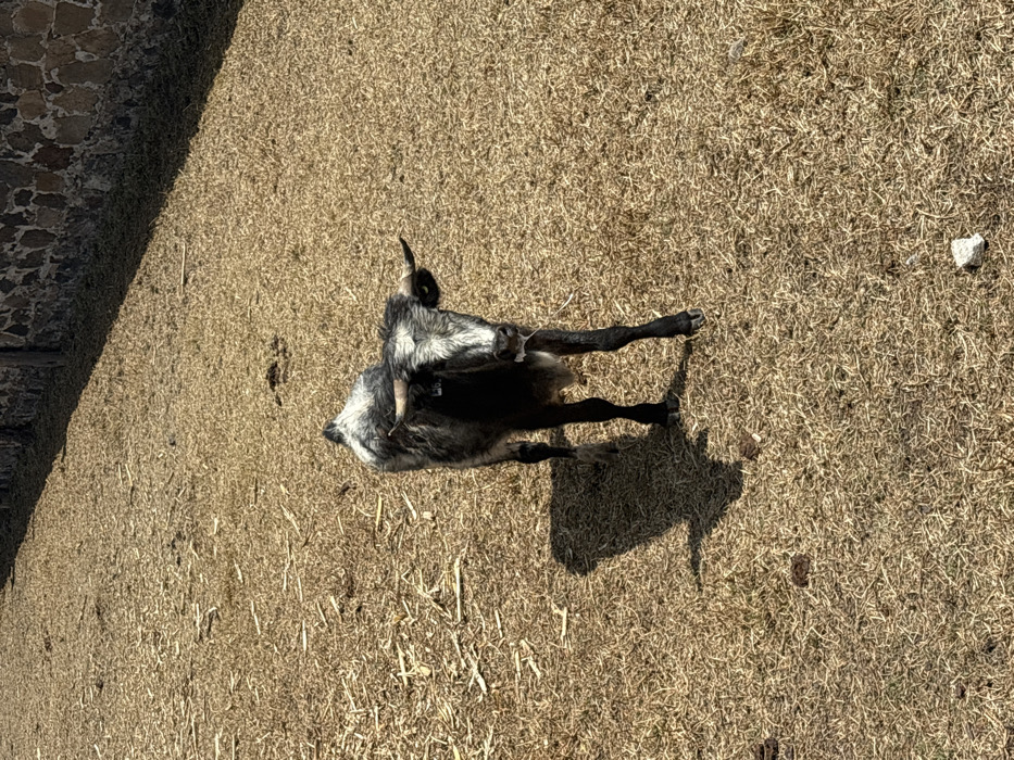 - "A mottled black and white goat stands centered in a dry, open area within Tenexac, Mexico" by FM-AQby33, licensed under CC BY 4.0