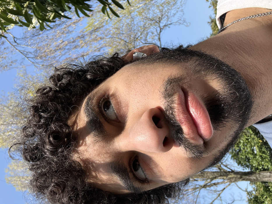 - "The image displays a close-up, low-angle portrait of a male individual with dark curly hair, dark eyes, and a dark beard" by FM-iKko62, licensed under CC BY 4.0