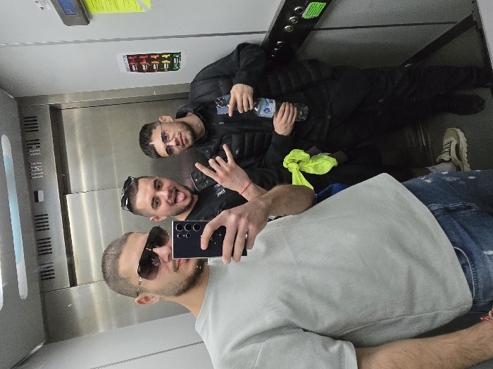 - "Three young adult males are photographed inside a metallic elevator, located in Pleven, Bulgaria" by FM-g73is1, licensed under CC BY 4.0