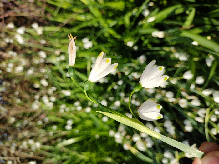- "The image depicts three Leucojum aestivum flowers on a single green stem, held by a human hand, situated within a dense field in the New Forest, United Kingdom" by FM-WOD6r2, licensed under CC BY 4.0