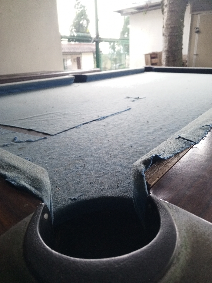 - "The scene captures an indoor environment in Voa Yeav, Cambodia, centering on a significantly deteriorated pool table" by FM-LMItj1, licensed under CC BY 4.0