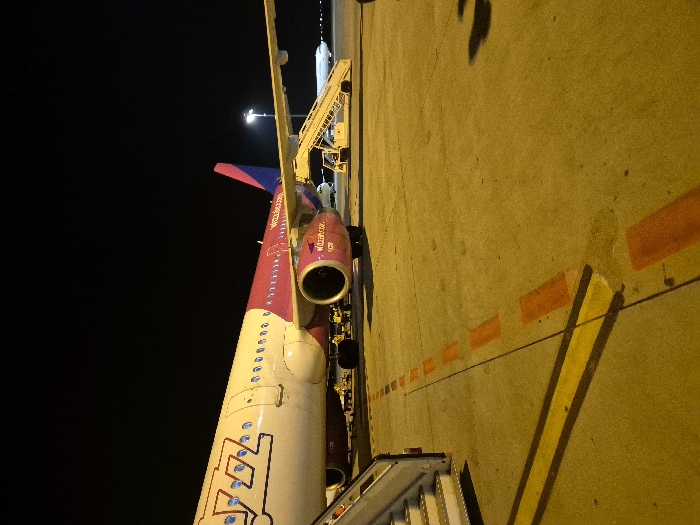 - "The image displays a Wizz Air Airbus A320 series aircraft parked on an illuminated airport tarmac at night" by FM-ARlry1, licensed under CC BY 4.0