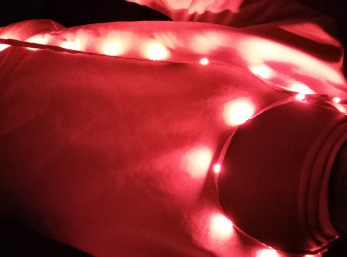 - "A red object draped with a string of small, glowing lights" by FM-UTT6r2, licensed under CC BY 4.0